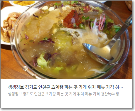 2tv 저녁 생생정보 방송에서는 초계탕이 소개됩니다.