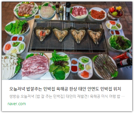 생방송 오늘저녁 밥잘주는민박집 정보는 아래를 통해서 확인하실 수 있습니다.
