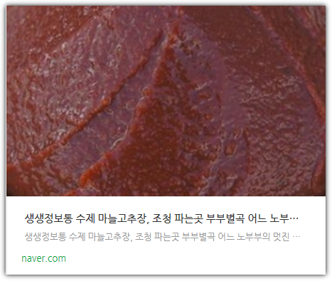 2tv 저녁 생생정보 방송에서는 수제 마늘고추장이 소개됩니다.