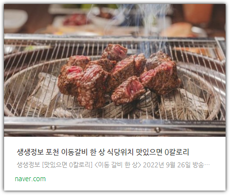 2tv 저녁 생생정보 방송에서는 이동갈비 식당이 소개됩니다.