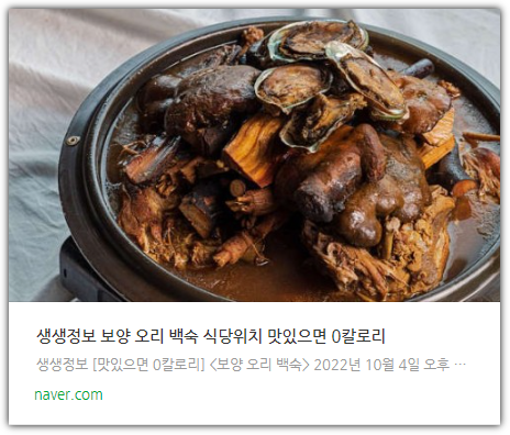 2tv 저녁 생생정보 방송에서는 보양오리백숙이 소개됩니다.