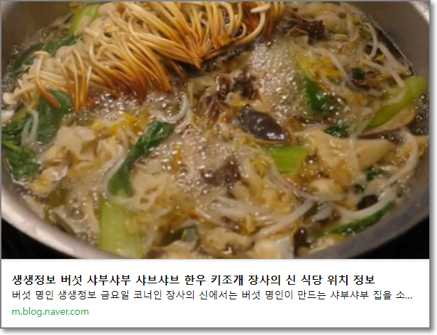 2tv 저녁 생생정보 4월 15일 방송에서는 장사의 신 코너에서 버섯 샤부샤부가 소개됩니다.