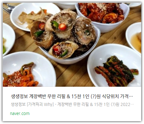 2tv 저녁 생생정보 방송에서는 게장백반 무한리필 식당이 소개됩니다.