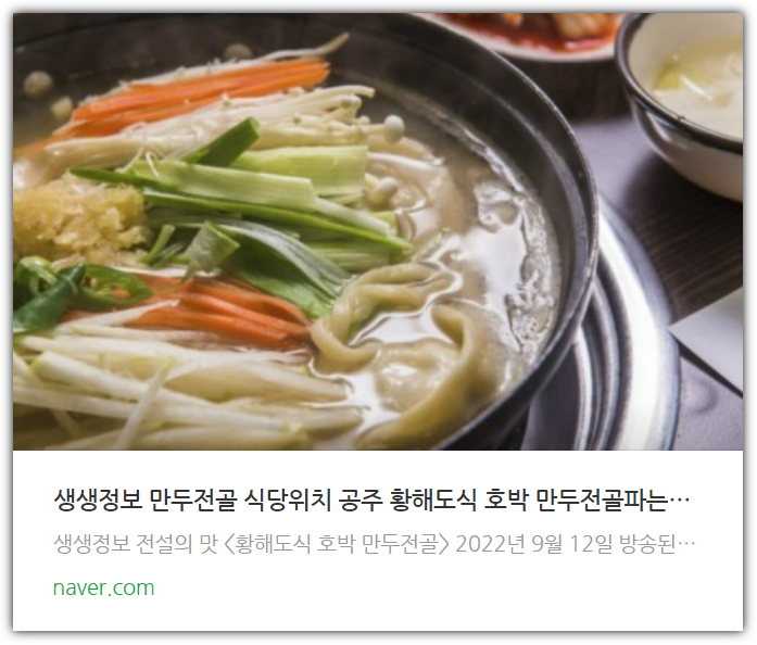 2tv 저녁 생생정보 방송에서는 황해도식 호박 만두전골 식당이 소개됩니다.