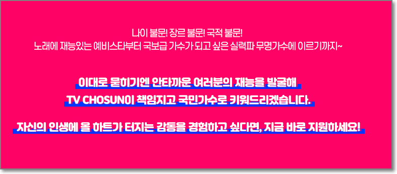 트롯 열풍을 일으킨 TV CHOSUN 오디션 제작진이 이끄는 대한민국 희망 프로젝트!